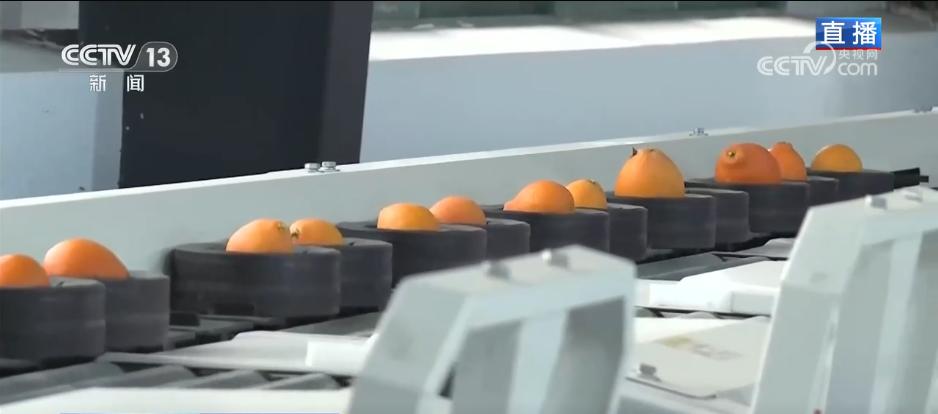 這段時間正好是當(dāng)?shù)馗涕倨贩N紅美人的豐收時節(jié),在這里能特別直觀地感受到,什么叫“沉甸甸的果實掛滿枝頭”。大家看這些果樹,因為果實太重了,樹枝都被壓彎了,工作人員用繩子把枝條吊起來支撐住,避免枝條被壓斷。當(dāng)然,這每一根被壓彎的枝條背后都是鄉(xiāng)親們增收希望。整個園區(qū)的紅美人年產(chǎn)量能超過500萬斤,年總產(chǎn)值接近1億元。