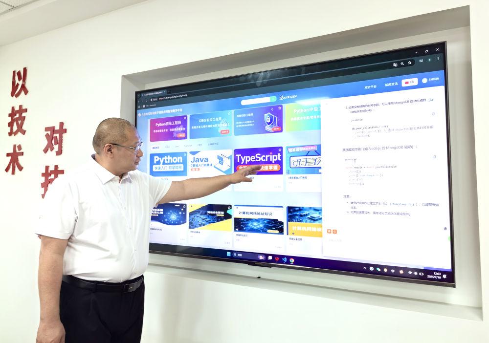 中科銳眼(天津)科技有限公司負責人介紹數(shù)字技能應用的“虛擬課堂”(石鑫 攝)