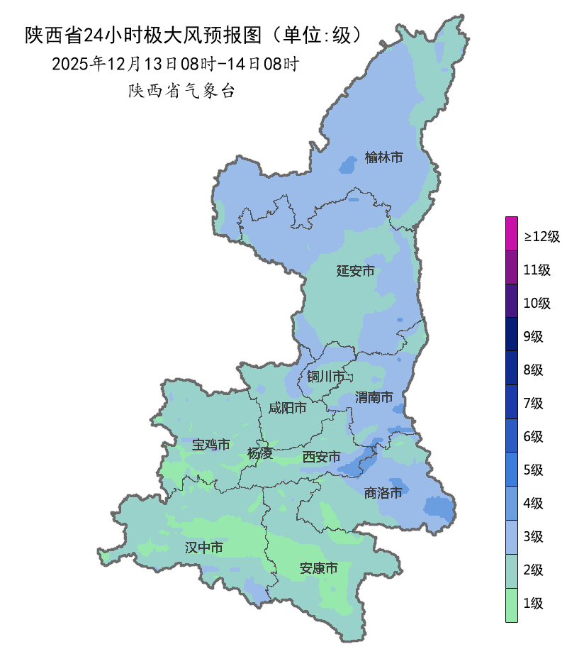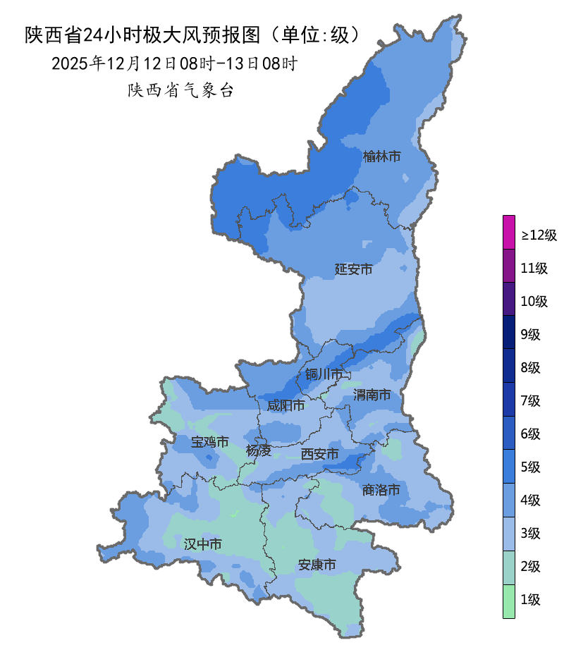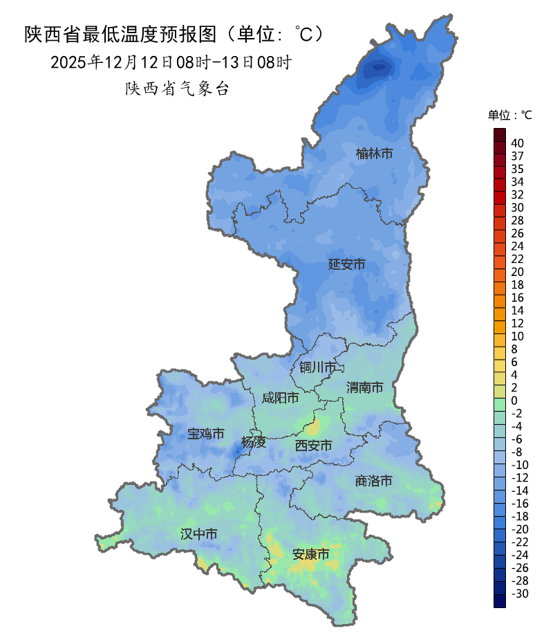 12至14日受寒潮影響,日平均氣溫陜北、關(guān)中大部下降6-8℃,陜北西部局地、秦嶺山西段下降8-10℃,局地10℃以上,最低氣溫將降至-15℃左右,局地陣風可達7級以上。
