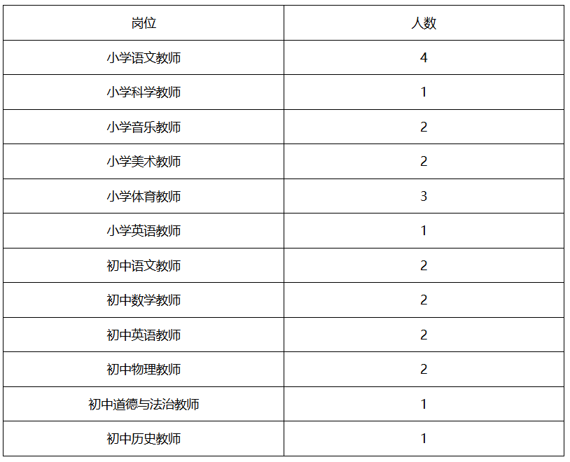 語文、數(shù)學(xué)、英語、體育、音樂、美術(shù)、科學(xué)、信息技術(shù)教師若干。
