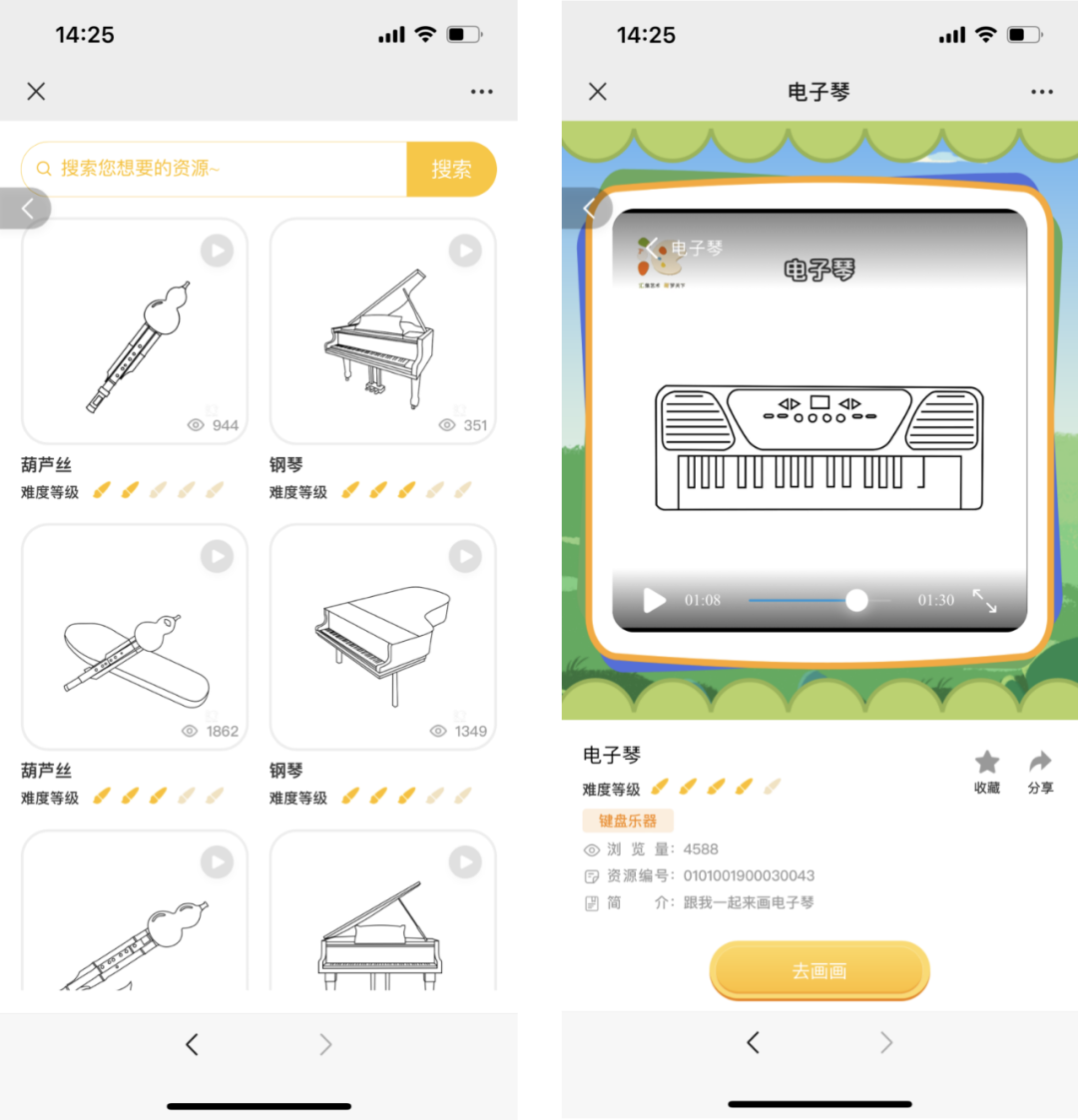 平臺(tái)提供6000余種繪畫素材,涵蓋各種主題和類型,如國粹、名畫、壁畫、名著、動(dòng)物、植物、人物、建筑等,均含視頻教程及繪畫步驟解析,滿足你對(duì)不同主題和風(fēng)格的繪畫需求。