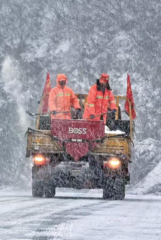 吳起縣交通局及時組織養(yǎng)護(hù)職工齊上陣,采用機(jī)械清掃、拋撒融雪劑等方式,清除縣域內(nèi)國道、省道路面積雪。交警部門對轄區(qū)急彎和陡坡等重點路段,加大道路巡查力度,幫助有需要的司乘人員。
