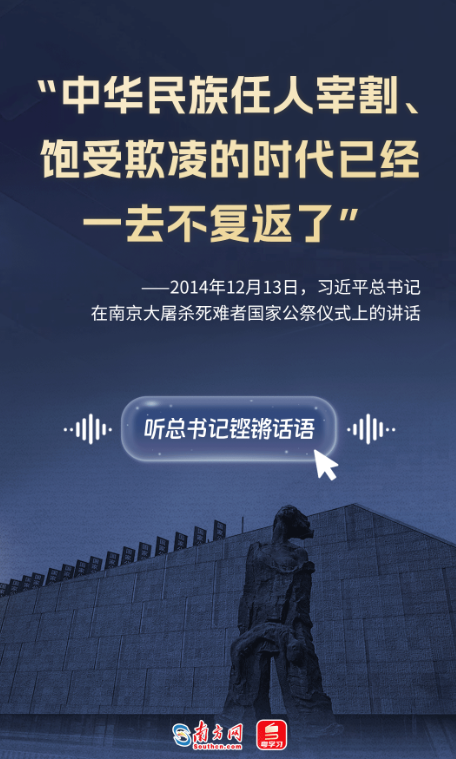 11年前的這一天,在首次南京大屠殺死難者國(guó)家公祭儀式上,習(xí)近平總書(shū)記強(qiáng)調(diào):我們?yōu)槟暇┐笸罋⑺离y者舉行公祭儀式,是要喚起每一個(gè)善良的人們對(duì)和平的向往和堅(jiān)守,而不是要延續(xù)仇恨。