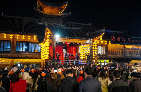 2025年11月29日,游客在普洱市茶馬古城旅游小鎮(zhèn)觀看舞蹈演出。