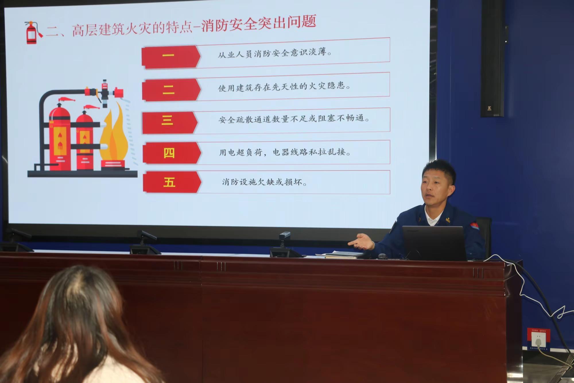 培訓(xùn)過程中,副大隊(duì)長蘇濤組織參訓(xùn)人員觀看了高層建筑火災(zāi)警示教育片,并就轄區(qū)高層建筑現(xiàn)存突出問題、火災(zāi)風(fēng)險(xiǎn)及消防安全隱患整改措施、整改時(shí)限等進(jìn)行了詳細(xì)的講解。