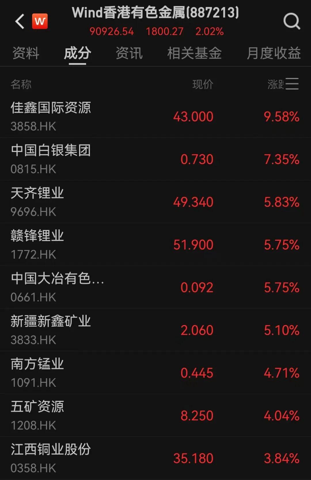 有色金屬板塊領(lǐng)漲,中國白銀集團(tuán)漲超7%,天齊鋰業(yè)漲近6%,贛鋒鋰業(yè)漲超5%。