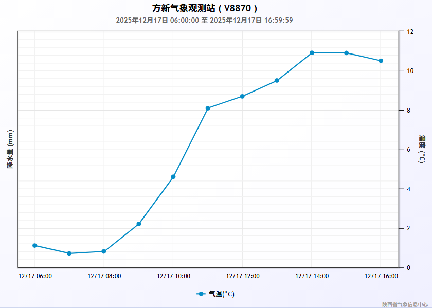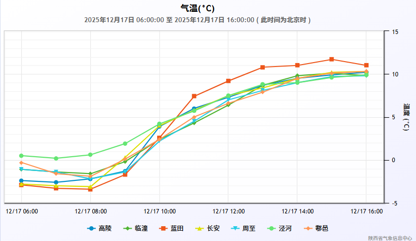 12月17日06時(shí)-16時(shí)方新氣象觀測(cè)站氣溫變化趨勢(shì)