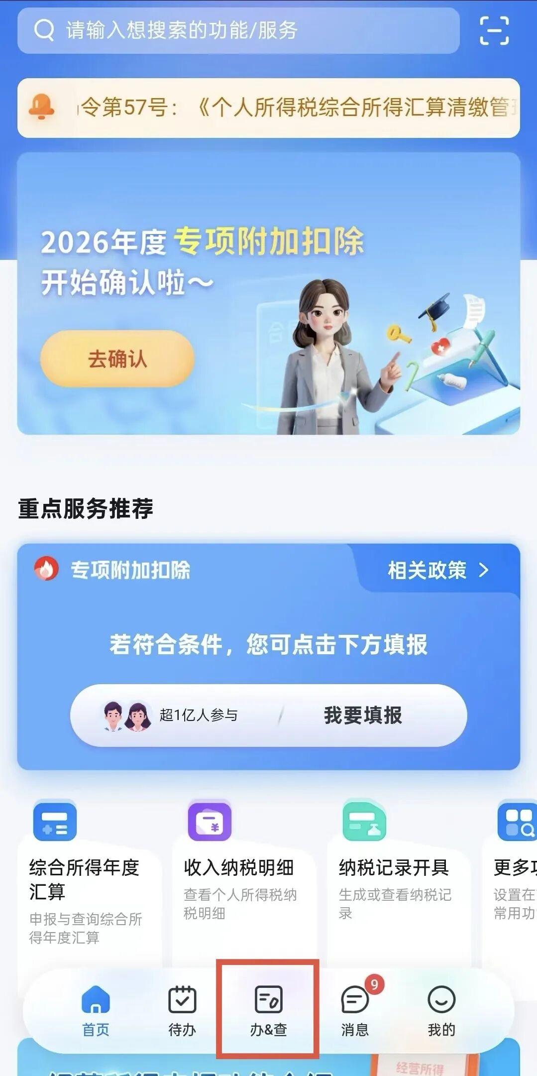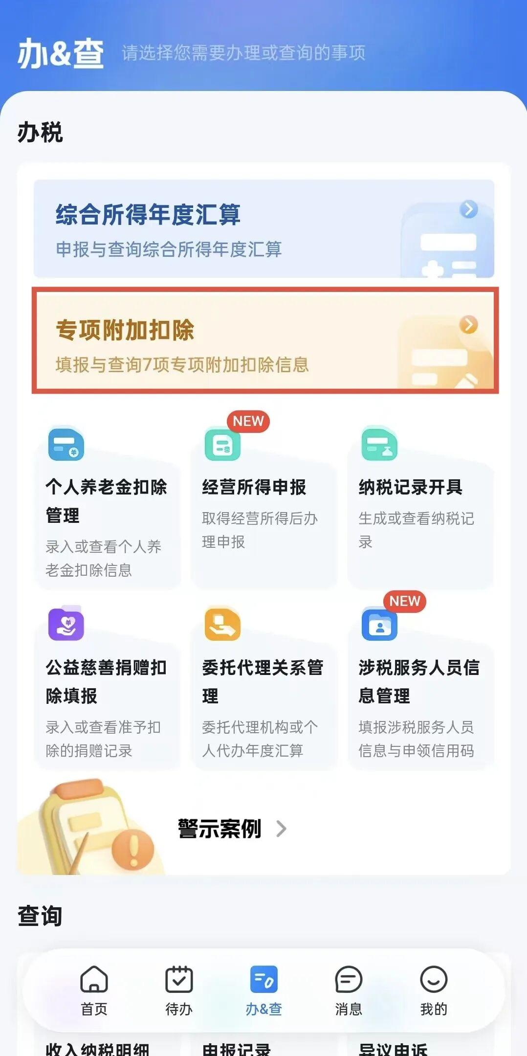 打開個人所得稅App,選擇“辦&查”“專項附加扣除”填報;