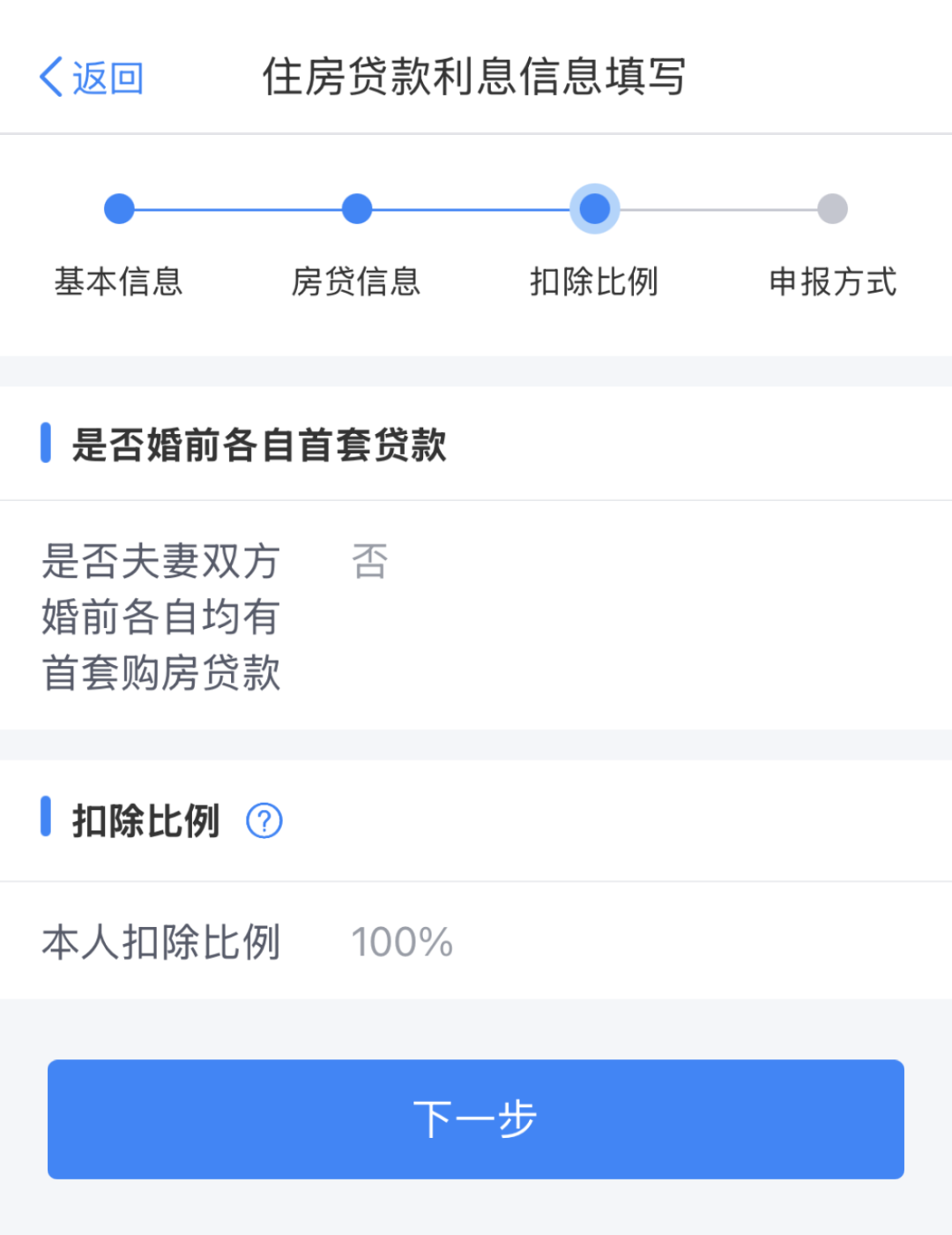 填寫“本人是否借款人”,選擇“扣除比例”;