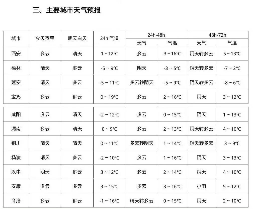 19日:多云轉陰天,秦嶺山區(qū)有雨夾雪或小雪,0℃~14℃;