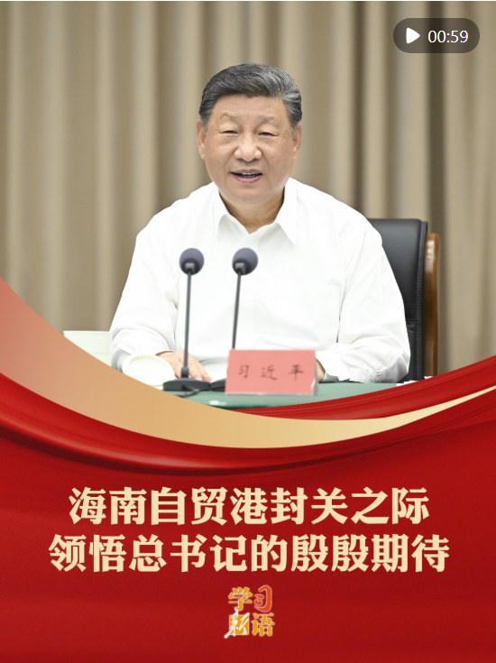 12月18日,海南自由貿(mào)易港正式啟動全島封關(guān)。建設(shè)海南自由貿(mào)易港,是習(xí)近平總書記親自謀劃、親自部署、親自推動的改革開放重大舉措。封關(guān)之際,讓我們領(lǐng)悟習(xí)近平總書記的殷殷期待,為把海南自由貿(mào)易港打造成為引領(lǐng)我國新時代對外開放的重要門戶加油。
