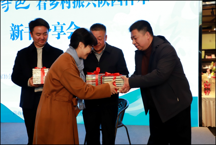 活動尾聲,陜西人民出版社向西安市藍田縣峪口村、寶雞市鳳翔區(qū)六營村、咸陽市禮泉縣袁家村代表贈書,為本次分享會畫上圓滿句號。