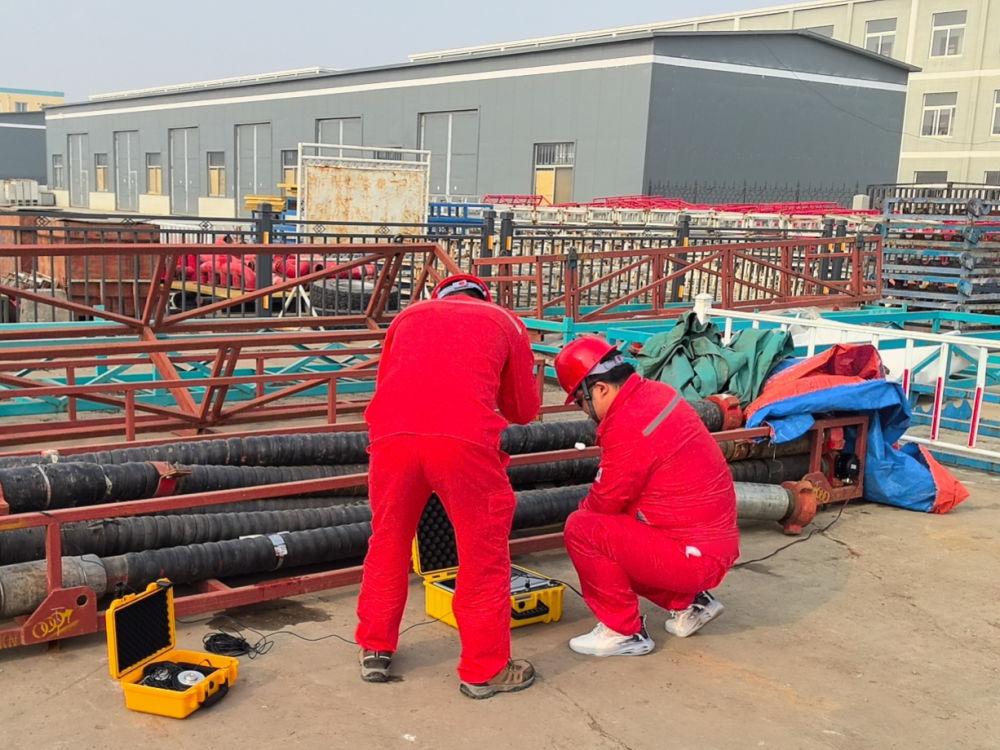 ??安徽中科昊音智能科技有限公司工作人員正在對油田軟管管道進(jìn)行聲紋AI檢測。受訪者供圖