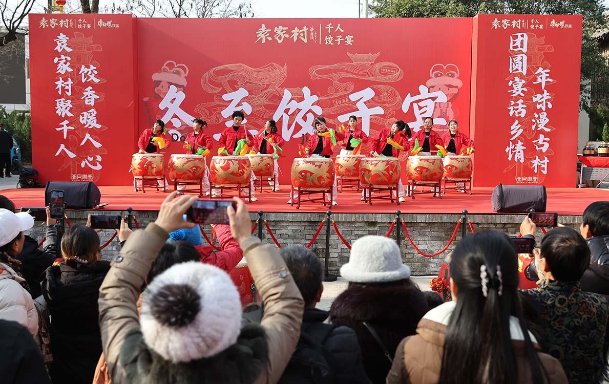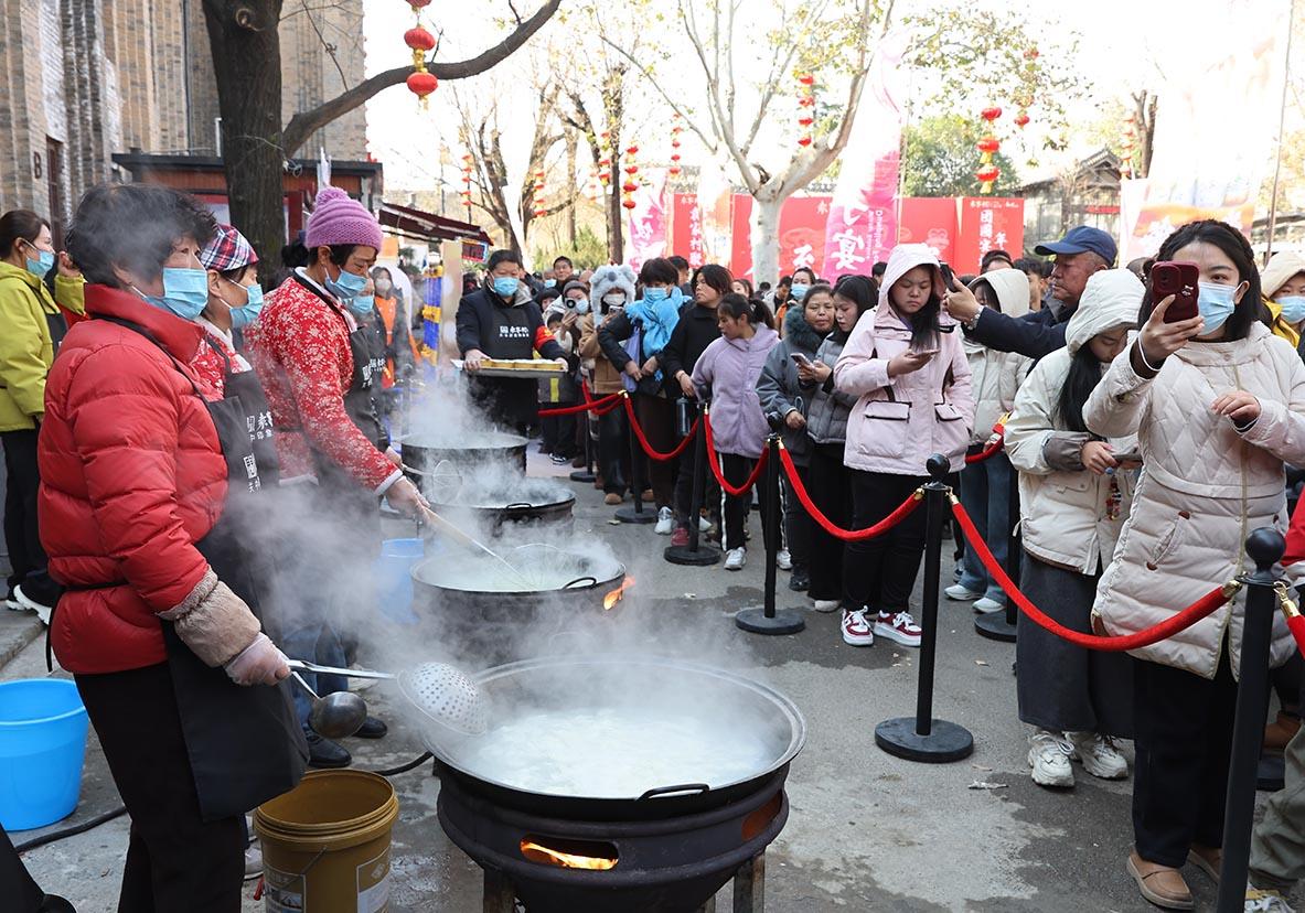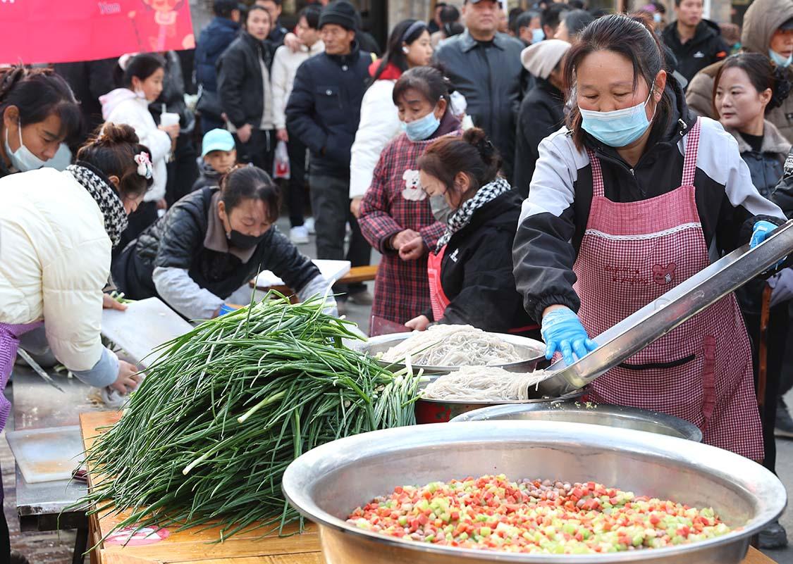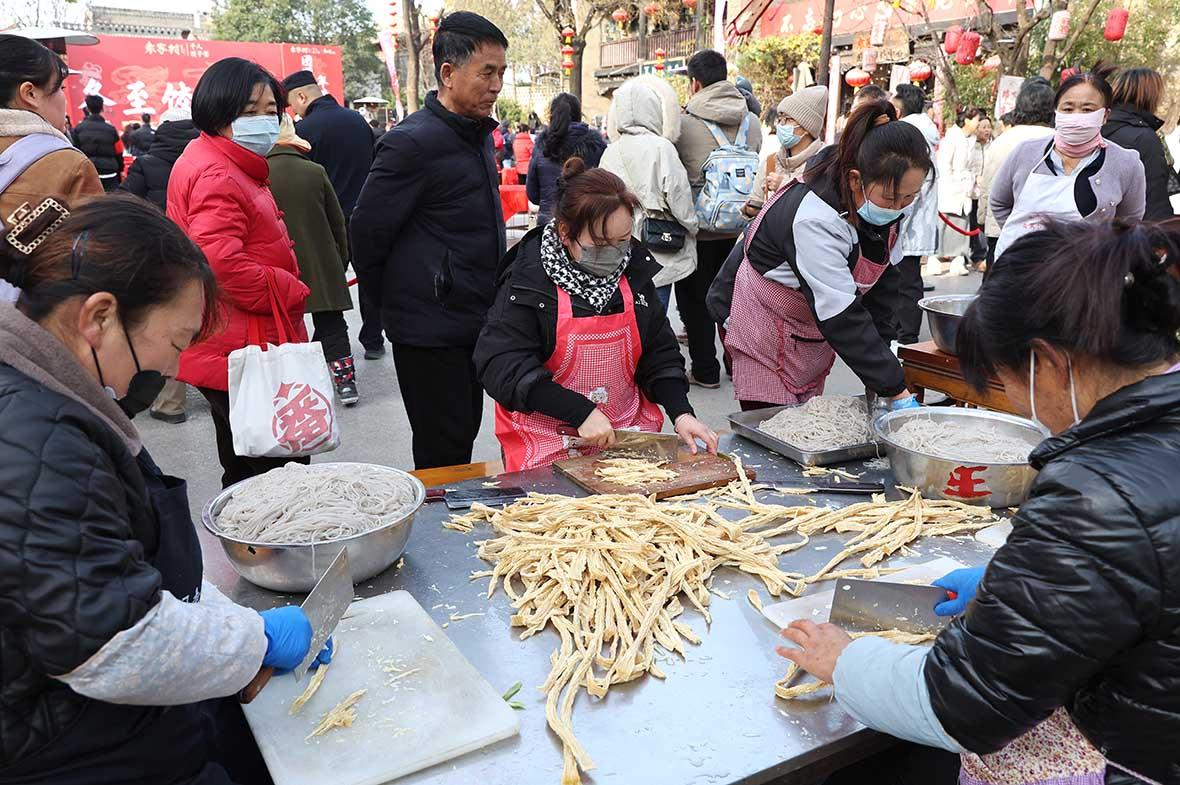 袁家村村委會主任王創(chuàng)戰(zhàn)穿梭在人群中:“我們專門殺了10頭豬備料,就是要把這個冬至過好,讓游客和村民都能感受到節(jié)日的熱鬧和溫暖。”