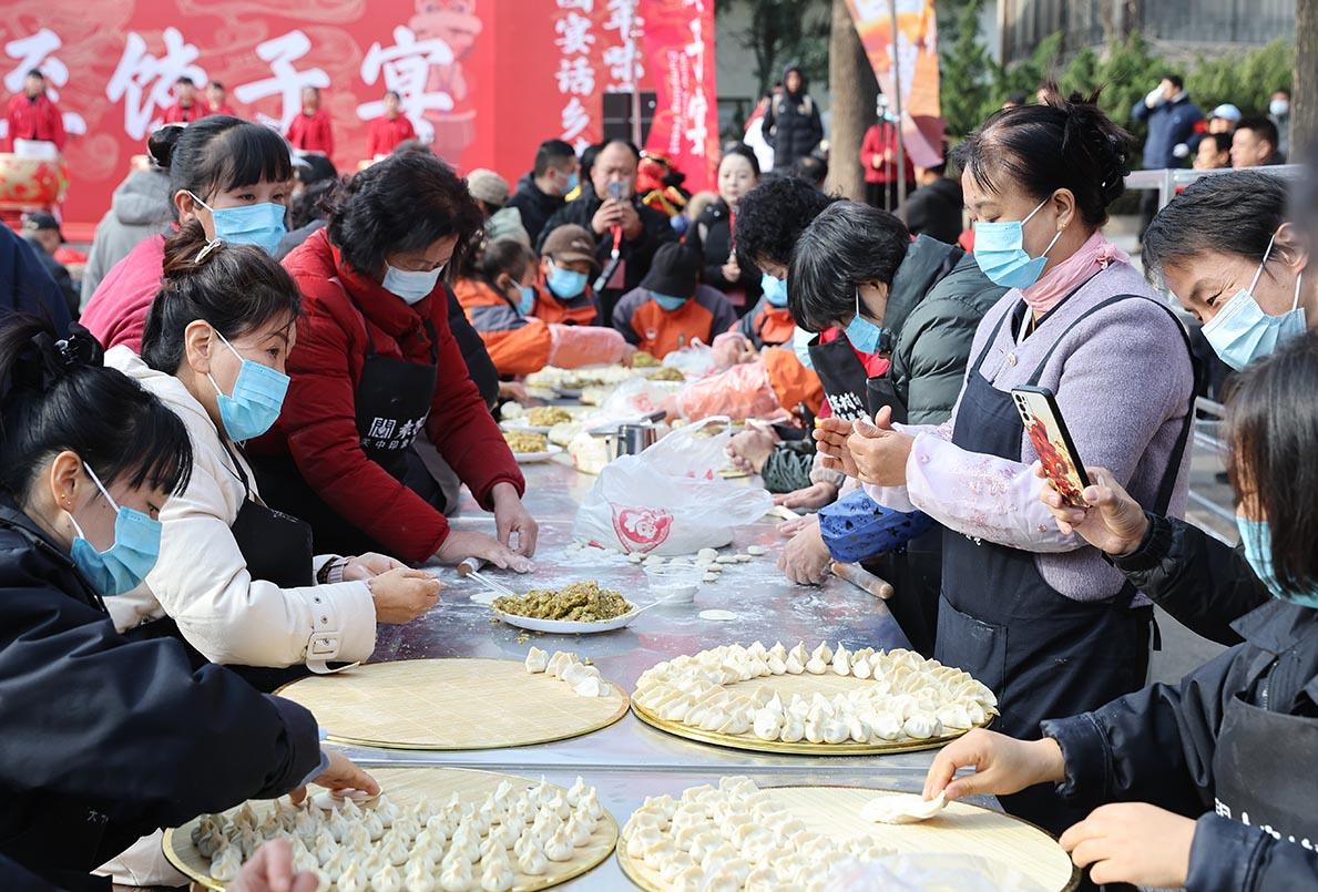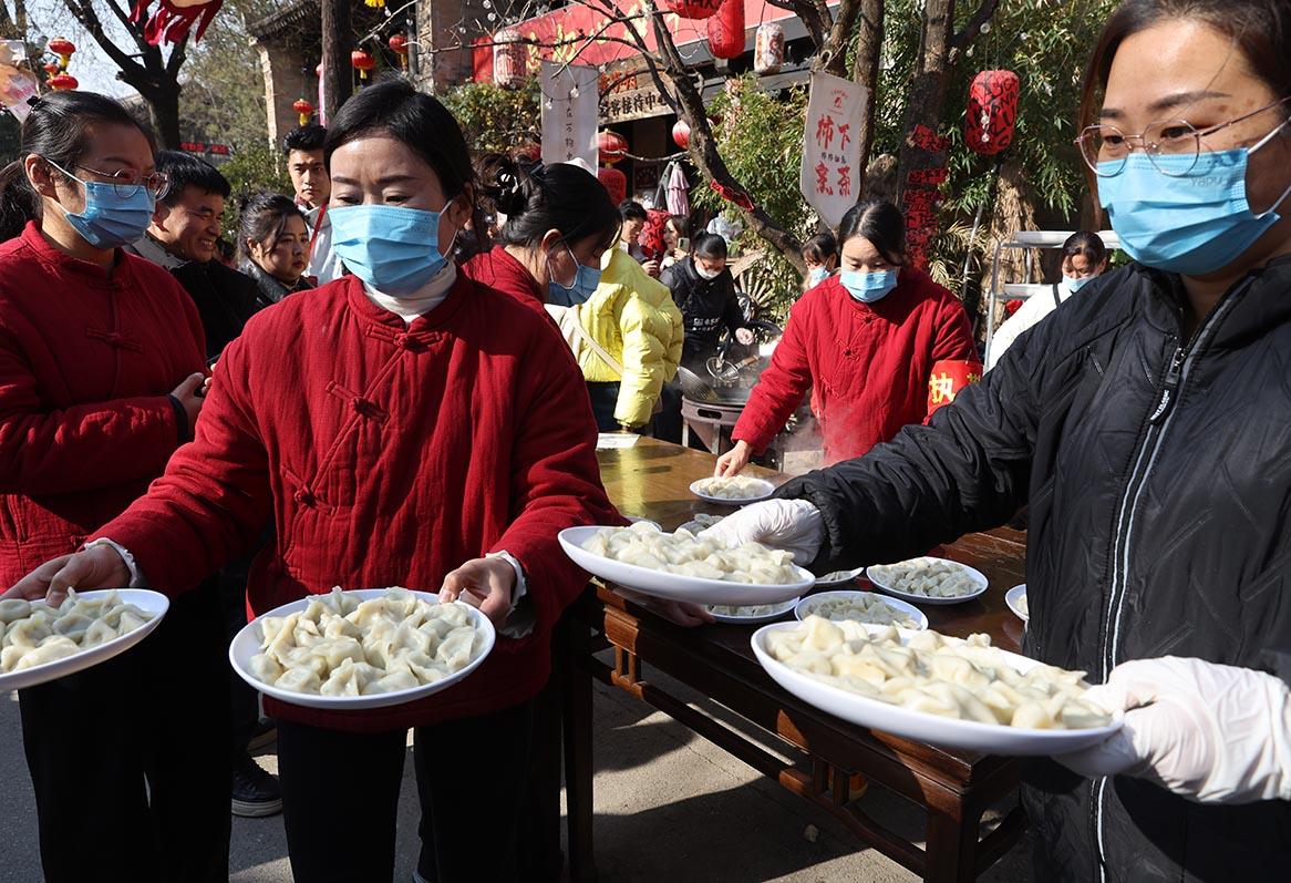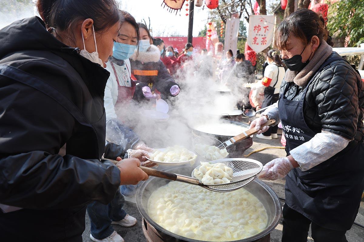 三秦都市報-三秦網(wǎng)訊(陶隆淇 記者 石喻涵 馬昭)“搟皮的快跟上!餡要多放才香!”“出鍋咯——熱餃子來嘍!”12月21日冬至當(dāng)天,陜西省禮泉縣煙霞鎮(zhèn)袁家村的中心廣場上熱氣蒸騰,第二屆千人餃子宴正式開席。揉面聲、剁餡聲、歡笑聲交織,10萬個鮮香四溢的餃子免費派送,上千名游客與村民圍坐一堂,在熱氣中感受“冬至大如年”的團(tuán)圓暖意。